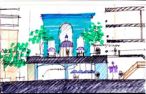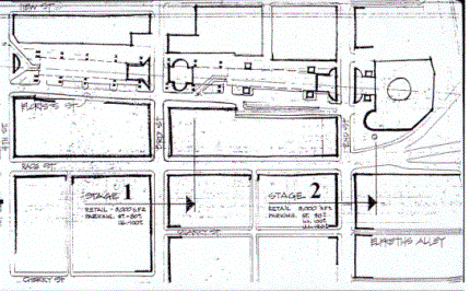 and creating an active pedestrian walkway with jitneys, commercial development,